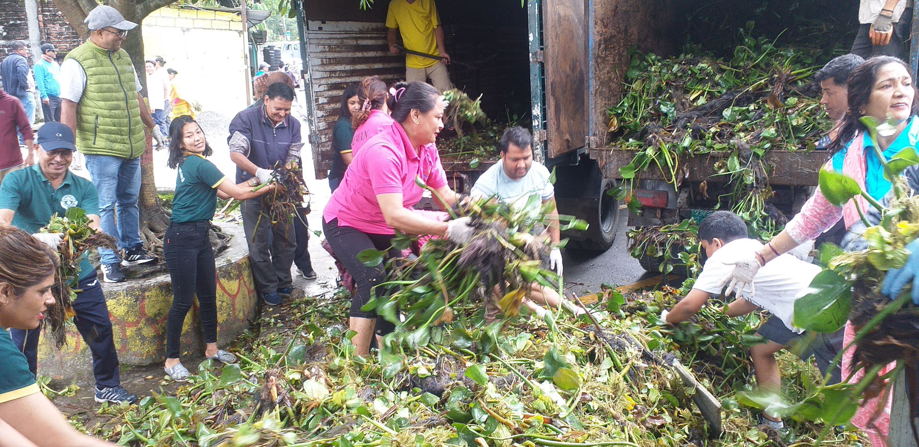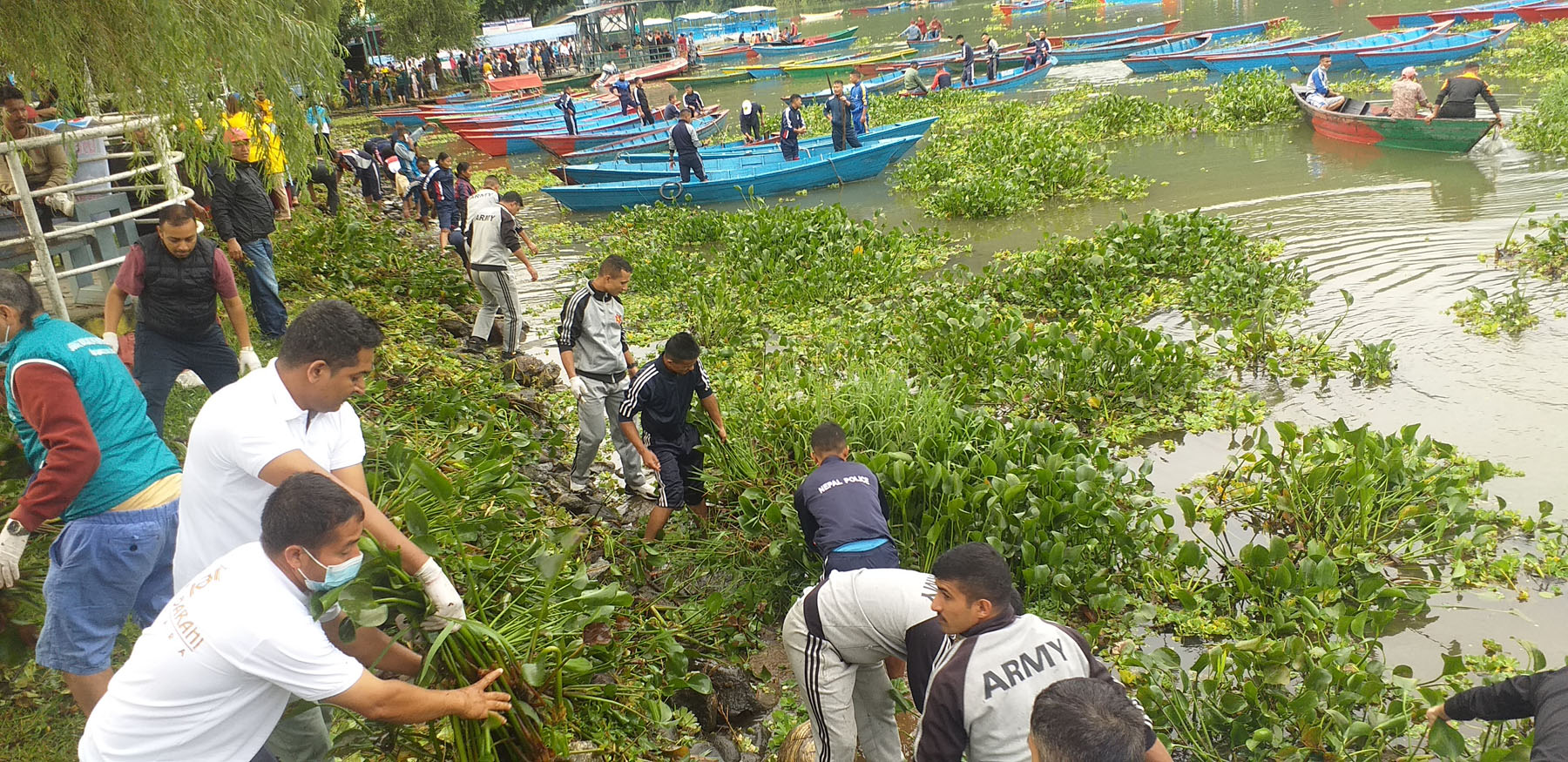 सरसफाइको पहिलो दिन विभिन्न सङ्घ संस्था, सरकारी कर्मचारी र सुरक्षाकर्मीद्वारा डुङ्गा तथा अन्य साधनको मद्दतबाट जलकुम्भी झार बाहिर निकाल्ने काम भएको जानकारी महानगरपालिकाका प्रमुख आचार्यले दिए । लगातारको वर्षासँगै तालको सबैजसो भागमा जलकुम्भी फैलिएको छ । बिहान तालको ड्यामसाइटबाट उत्तरतर्फको खहरेसम्म जलकुम्भी झार निकालिएको छ । तालमा झार धेरै भएकाले सबै झार निकाल्न एक हप्ता समय लाग्ने प्रमुख आचार्यको भनाइ छ । तालको बीचभागमा अवस्थित तालबाराही मन्दिर दर्शन गर्न जाने स्वदेशी तथा विदेशी पर्यटकलाई जलकुम्भीले अवरोध गर्ने गरेको छ ।