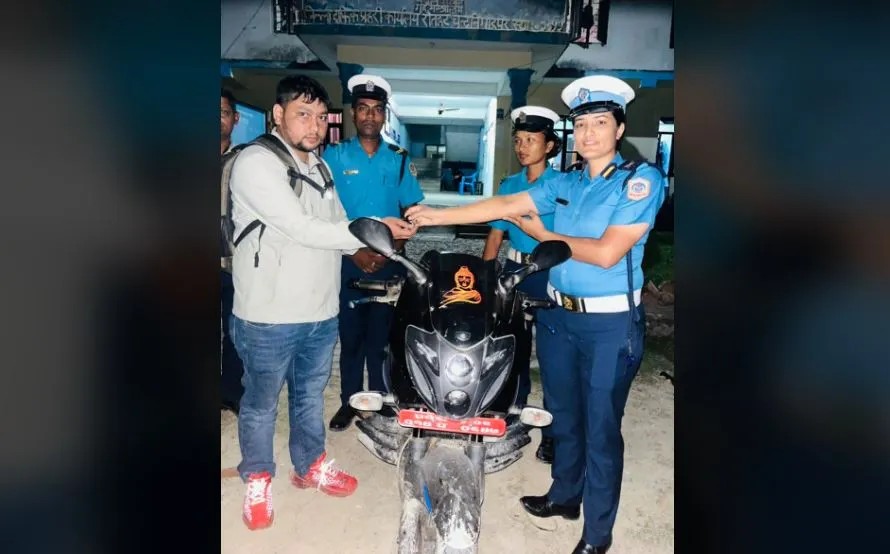कार्यालय प्रमुख प्रहरी निरीक्षक विमला कुमारी कठायतले मोटरसाइकल धनी लकान्द्रीलाई बुझाएकी हुन् । जिल्ला ट्राफिक प्रहरी कार्यालय राैतहट चन्द्रनिगाहापुरकाे चेक पाेईन्टमा ३० गते रातिनै ११ बजेकाे ट्राफिक प्रहरीले चेकजाँच गर्ने क्रममा फेला सो मोटरसाइकल फेला परेको प्रहरी निरीक्षक कठायतले जानकारी दिइन्। उनका अनुसार मोटरसाइकलमा चोर ट्राफिक प्रहरीलाई देखेपछि मोटरसाइकल सोही स्थानमा छाडेर फरार भएका थिए।